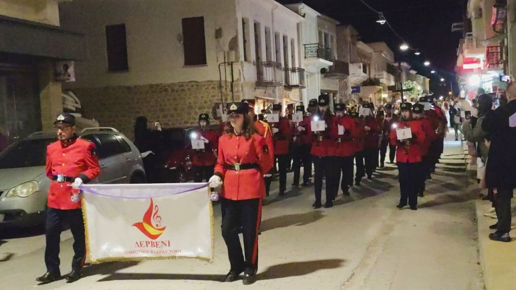 Η Δημοτική Φιλαρμονική Δερβενίου συνόδευσε τη περιφορά του Επιταφίου με τους πένθιμους ήχους του «Αι γενεαί αι πάσαι» και του πένθιμου εμβατηρίου "Επιτάφιος" , σε σύνθεση του αρχιμουσικού του Παναγιώτη Παναγάκου.