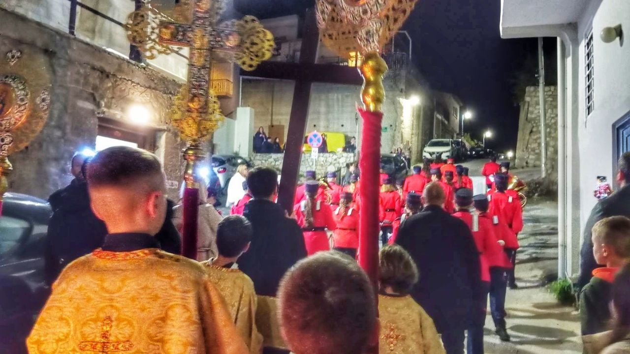 Πλήθος πιστών και κατάνυξη στην περιφορά του Επιταφίου στο Δερβένι Κορινθίας