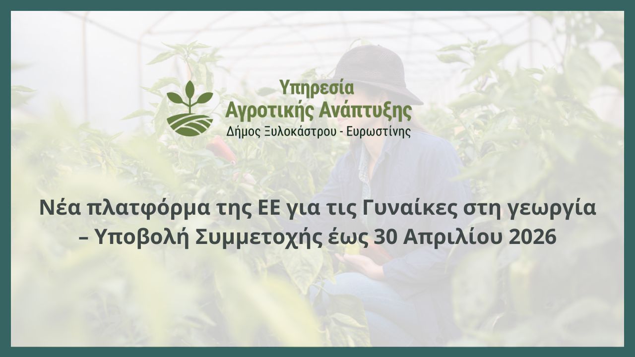 Επισκεφθείτε τη νέα πλατφόρμα στο σύνδεσμο: agri.xylokastro-evrostini.gov.gr