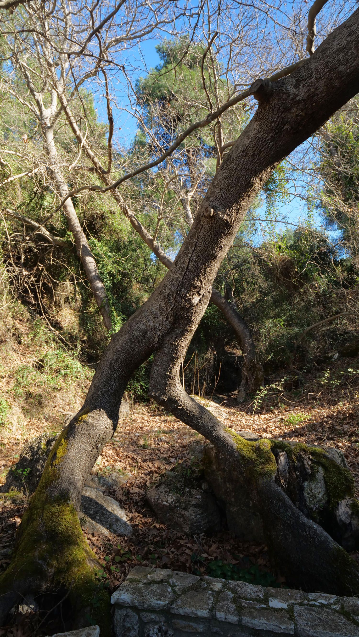 Θα παρατηρήσεις ότι πίσω ακριβώς από τη βρύση, βρίσκεται ένα πλατάνι πολύ ιδιαίτερο. Πρόκειται στην ουσία για διπλό δέντρο που οι κορμοί του ενώνονται και καταλήγει να γίνει ένα πλατάνι! Τρελό; Κι όμως, αληθινό και απόλυτα... Ελληνικό!
