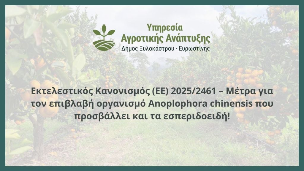 Εκτελεστικός Κανονισμός (ΕΕ) 2025/2461 – Μέτρα για τον επιβλαβή οργανισμό Anoplophora chinensis που προσβάλλει και τα εσπεριδοειδή!
