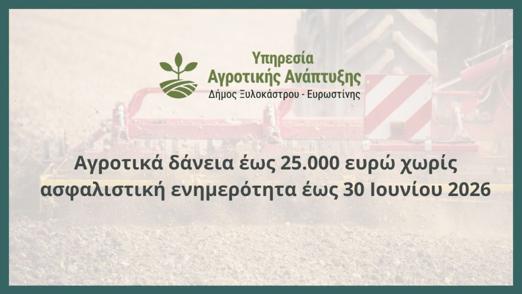 Αγροτικά δάνεια έως 25.000 ευρώ χωρίς ασφαλιστική ενημερότητα έως 30 Ιουνίου 2026