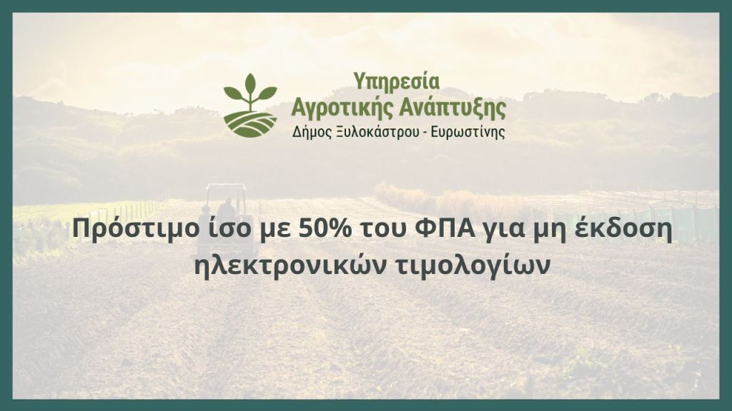 Πρόστιμο ίσο με 50% του ΦΠΑ για μη έκδοση ηλεκτρονικών τιμολογίων