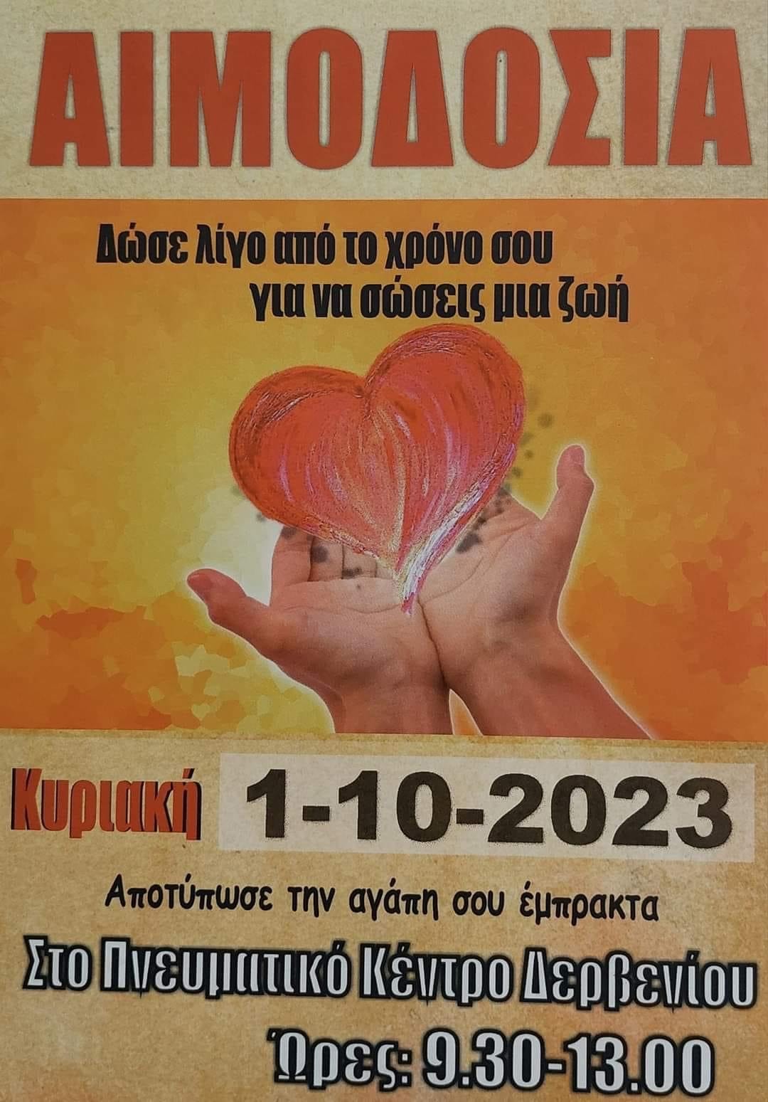 Εθελοντικές Αιμοδοσίες στο Δερβένι – Αύριο, Κυριακή 1 Οκτωβρίου