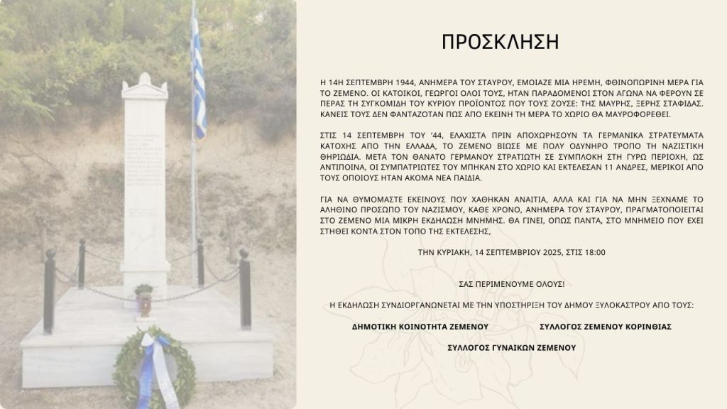 Ετήσιο μνημόσυνο των εκτελεσθέντων από τις Γερμανικές δυνάμεις κατοχής στο Ζεμενό Κορινθίας