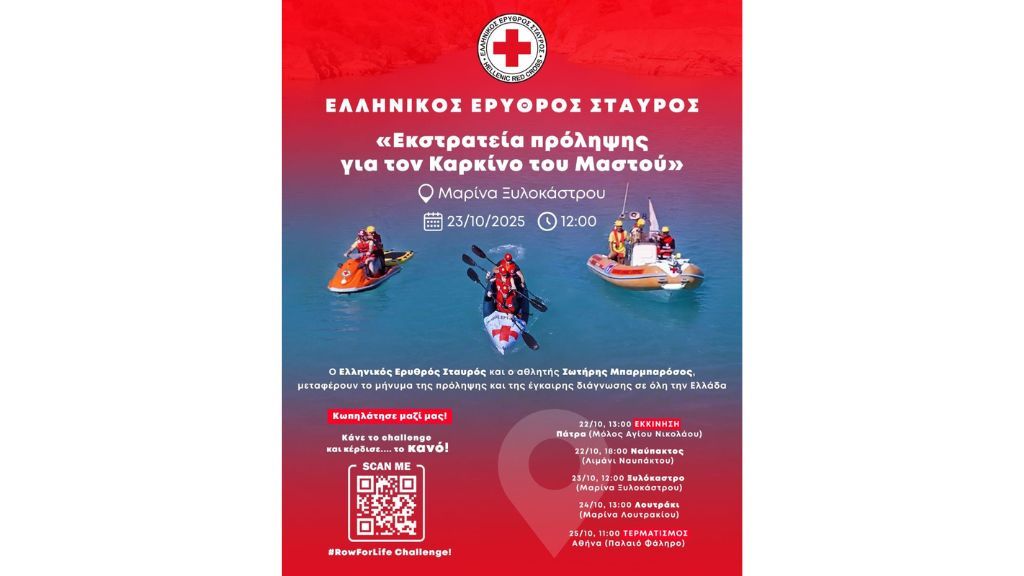 Ο Ελληνικός Ερυθρός Σταυρός (Ε.Ε.Σ.) και ο αθλητής μεγάλων αποστάσεων, Σωτήρης Μπαρμπαρόσος, μεταφέρουν το μήνυμα της πρόληψης και της έγκαιρης διάγνωσης για τον καρκίνο του μαστού, κωπηλατώντας από την Πάτρα έως την Αθήνα.