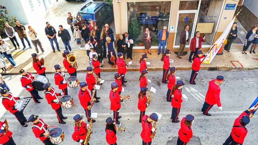 Κατά τη διάρκεια της παρέλασης η Δημοτική Φιλαρμονική Δερβενίου παιάνισε το πατριωτικό εμβατήριο "Παιδιά της Ελλάδος Παιδιά", σε σύνθεση του Μιχάλη Σουγιούλ και σε διασκευή για μπάντα του μαέστρου Παναγιώτη Παναγάκου , σκορπώντας ενθουσιασμό και ρίγη συγκίνησης στον κόσμο καταχειροκροτούμενη.