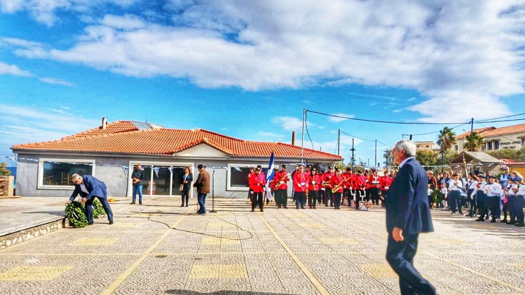Μετά την δοξολογία εψάλη επιμνημόσυνη δέηση στο Μνημείο των ΗΡΩΩΝ και ακολούθησε η Κατάθεση στεφάνων , ενός λεπτού σιγή και η τελετή έκλεισε με την ανάκρουση του Εθνικού Ύμνου από τη Δημοτική Φιλαρμονική Δερβενίου.