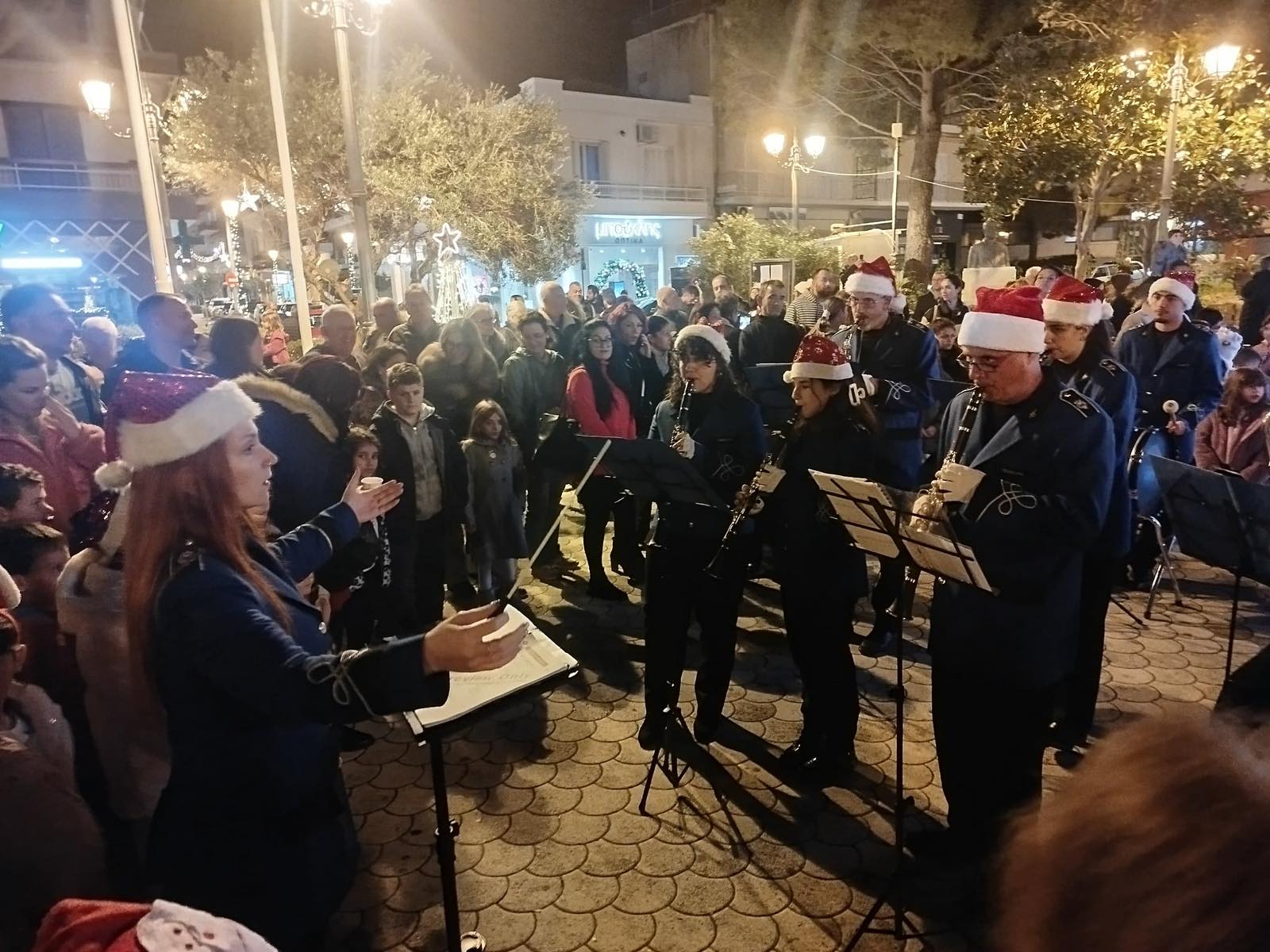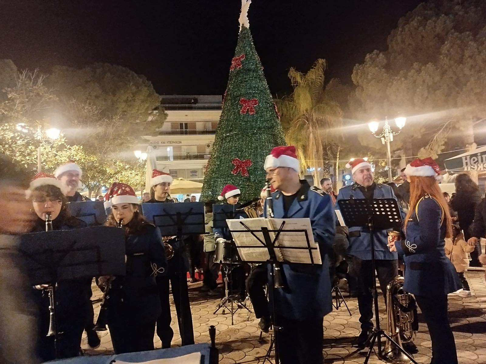 Η Δημοτική Φιλαρμονική Ξυλοκάστρου ερμήνευσε αγαπημένες χριστουγεννιάτικες μελωδίες, δημιουργώντας ένα ζεστό μουσικό σκηνικό που αγκάλιασε όλη την πλατεία.