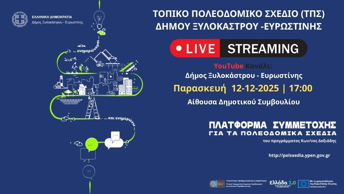 Ο Δήμος Ξυλοκάστρου–Ευρωστίνης καλεί όλους τους δημότες να συμμετέχουν στις εορταστικές εκδηλώσεις που ακολουθούν, σε ένα πρόγραμμα που έχει σχεδιαστεί με στόχο τη χαρά, την αισιοδοξία, τη συμμετοχή και την ενότητα της τοπικής κοινωνίας.