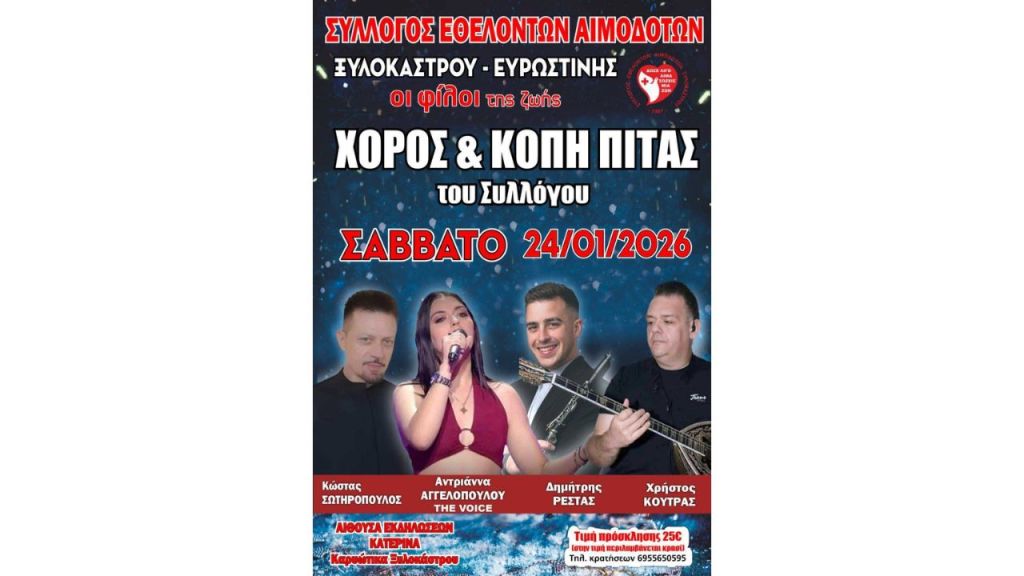 Χορός & Κοπή Πίτας Συλλόγου Εθελοντών Αιμοδοτών Ξυλοκάστρου - Ευρωστίνης «Οι Φίλοι της Ζωής»