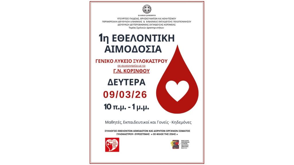 1η Εθελοντική Αιμοδοσία στο ΓΕΛ Ξυλοκάστρου