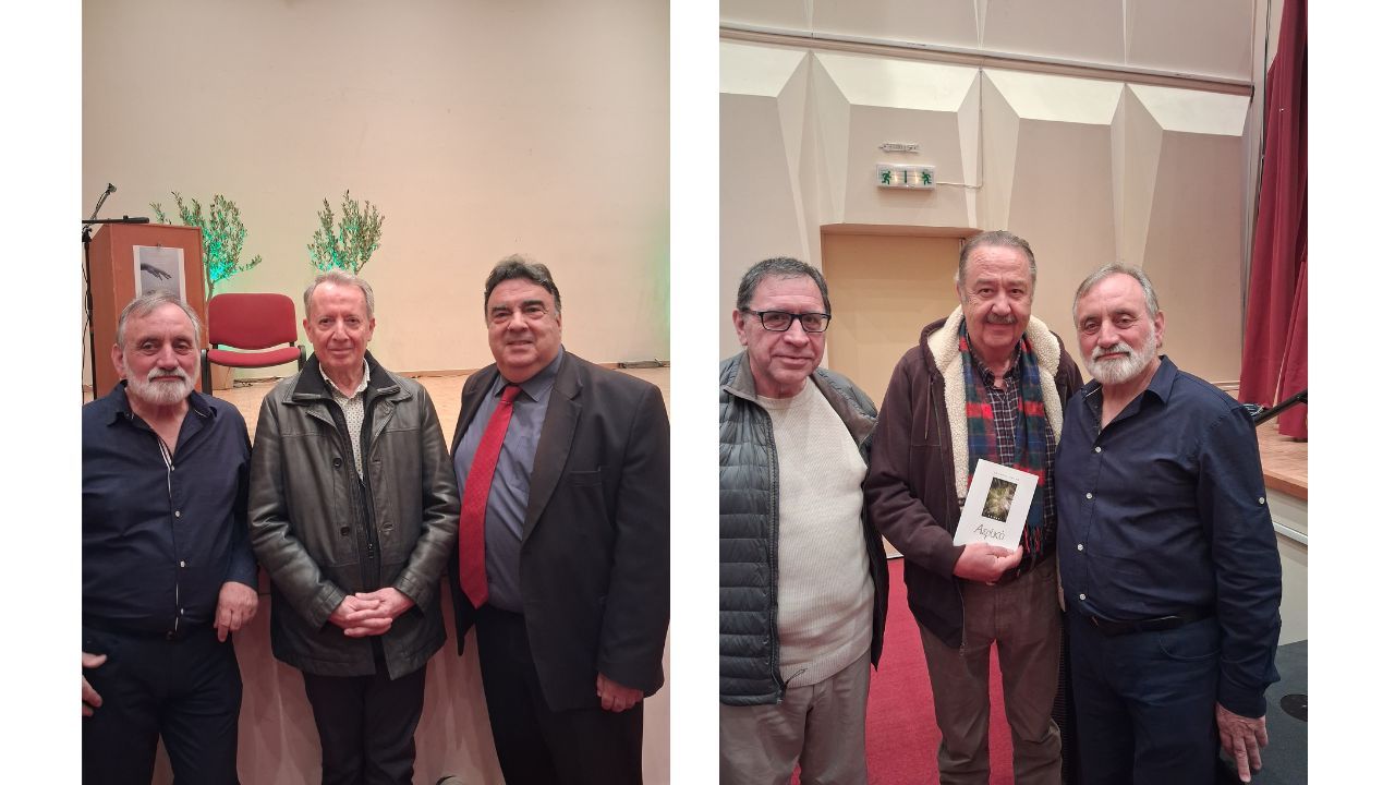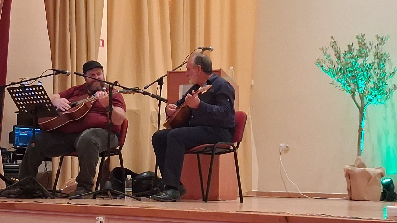 Η εκδήλωση ολοκληρώθηκε με έναν ιδιαίτερα ζεστό και συμβολικό τρόπο: με ένα μελοποιημένο ποίημα, όπου ο ποιητής συνόδευσε με μπουζούκι την κιθάρα του Γιάννη Ρασούλη, δημιουργώντας μια ατμόσφαιρα αυθεντικής καλλιτεχνικής σύμπραξης.