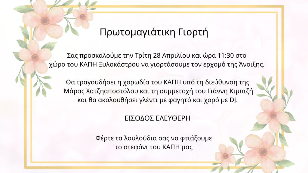 Πρωτομαγιάτικη Γιορτή στο ΚΑΠΗ Ξυλοκάστρου
